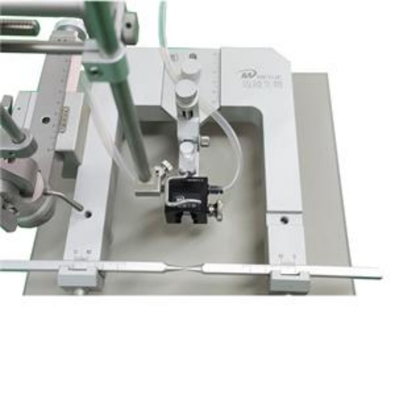 大鼠適配器是腦立體定位儀標(biāo)準(zhǔn)配件,它通過一對耳桿、鼻和門齒夾固定大鼠頭部,通過燕尾槽上下移動30mm(移動精度10um),以及水平方向移動范圍50mm,滿足不同體重大鼠的固定。