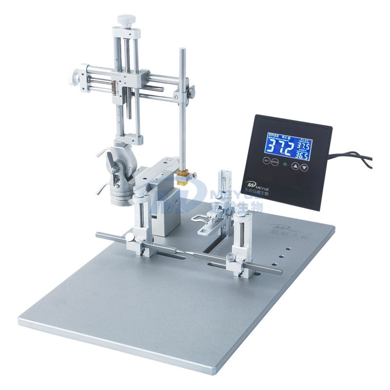 M5053輕便型數(shù)顯大小鼠腦立體定位儀取消U型支架,小鼠適配器與底板直接結(jié)合,給實驗提供了一個寬敞、開闊的空間,方便實驗人員對小鼠進行頭部定位操作。