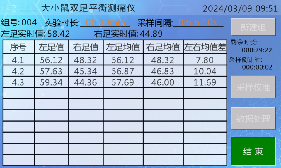 5 touch screen operation and USB data storage function, which can quickly set parameters, control instruments, and manage data. All functions can be achieved through intuitive touchscreen interface operation. The accompanying USB drive can store all data (including average claw weight, standard deviation, left-right ratio, etc.), making it easy to carry data. In addition, it can directly display data results in real-time in the form of charts.